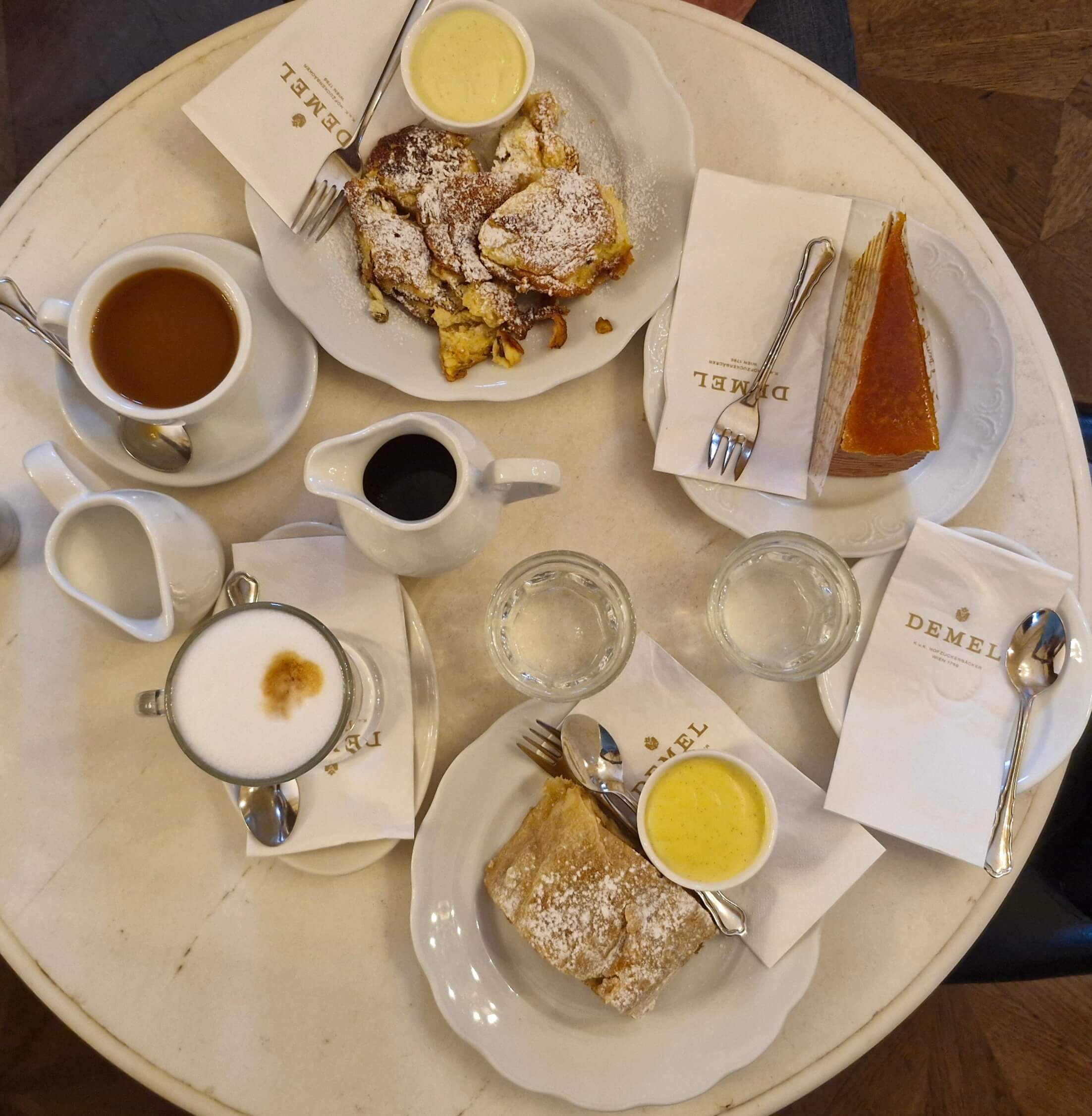 Am dritten Tag gönnten wir uns dann noch einen Stop im legendären Café Demel: Sachertorte, Strudel, Kaiserschmarrn – ein würdiger Abschluss für ein durchwachsenes, aber inspirierendes Event 🍰☕. Bekannt ist das Demel übrigens auch für sein Veilchen-Eis, das angeblich Kaiserin Sissi so sehr mochte – wir haben es allerdings nicht probiert.