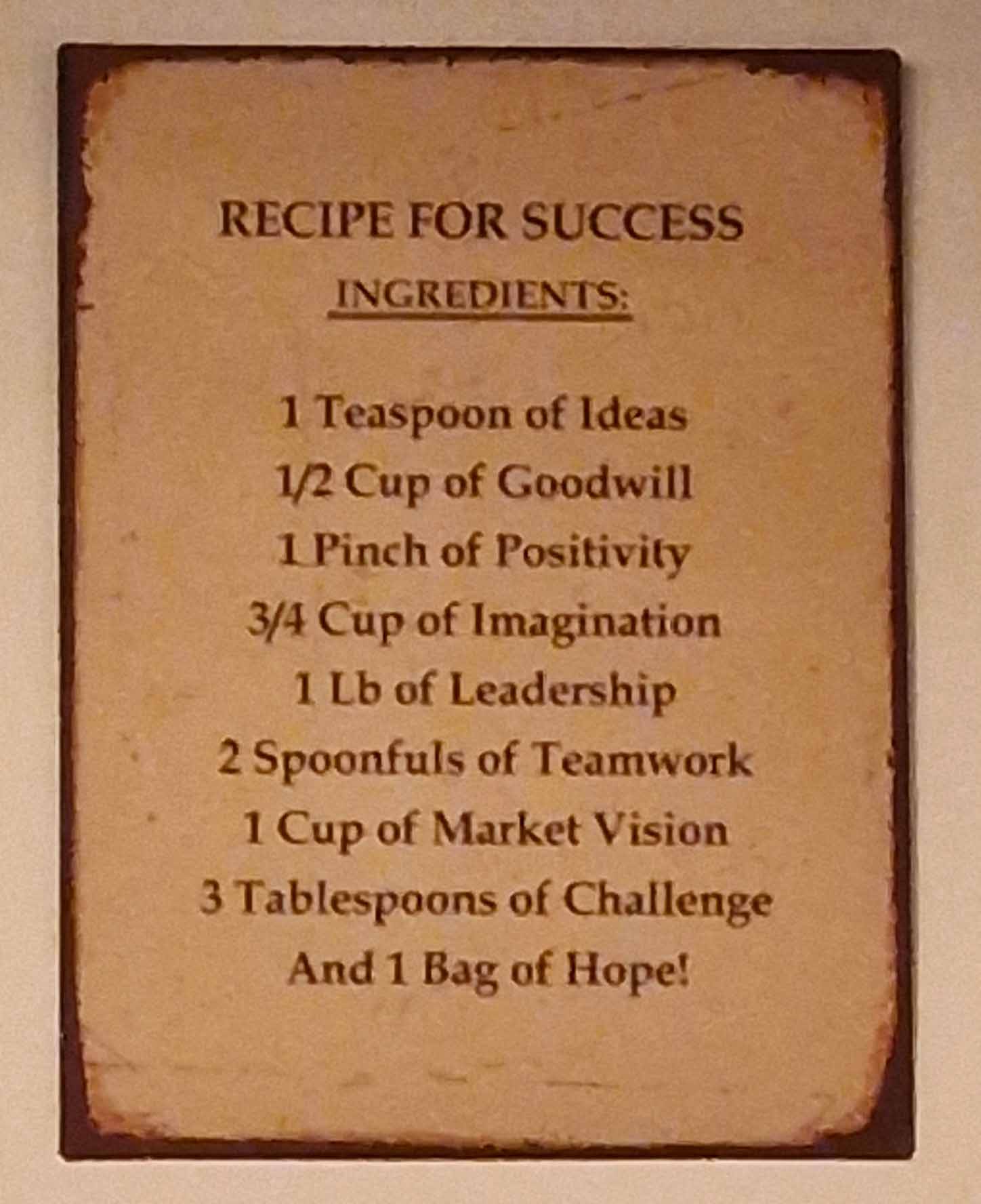 Die Atmosphäre dort war urig, die Bier-Deko sehenswert, und an der Wand hing sogar ein „Recipe for Success“, das ich fotografiert habe: